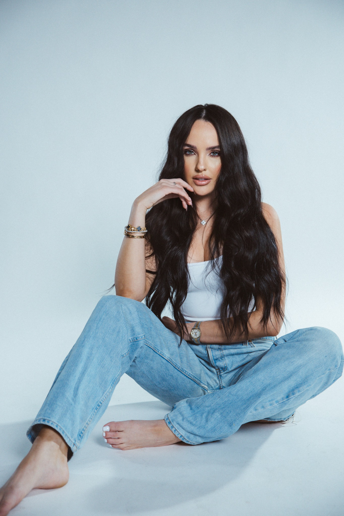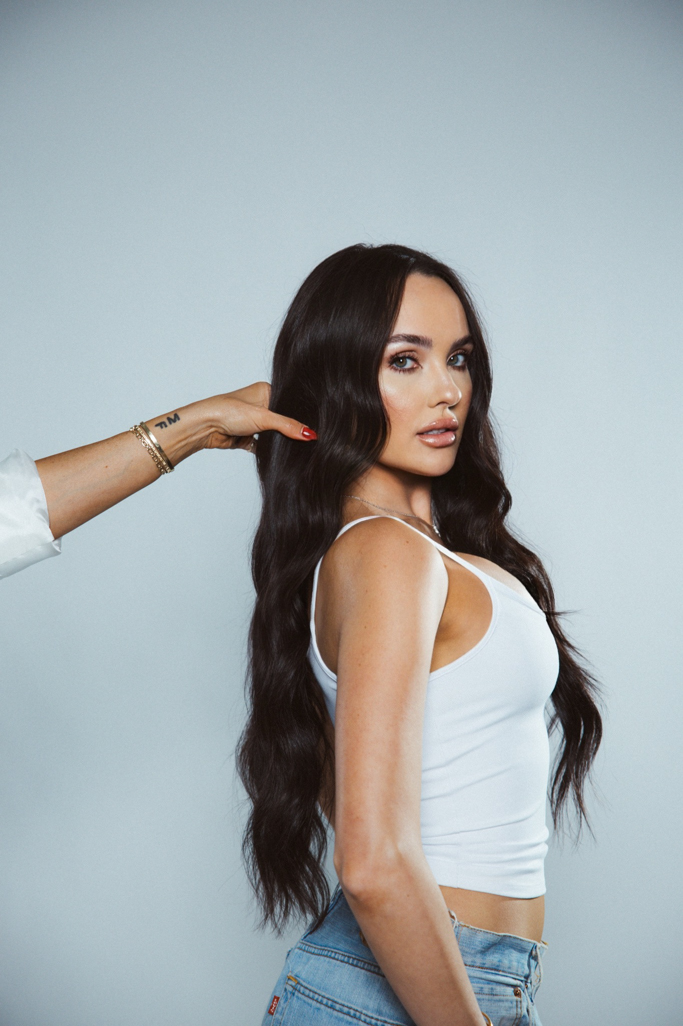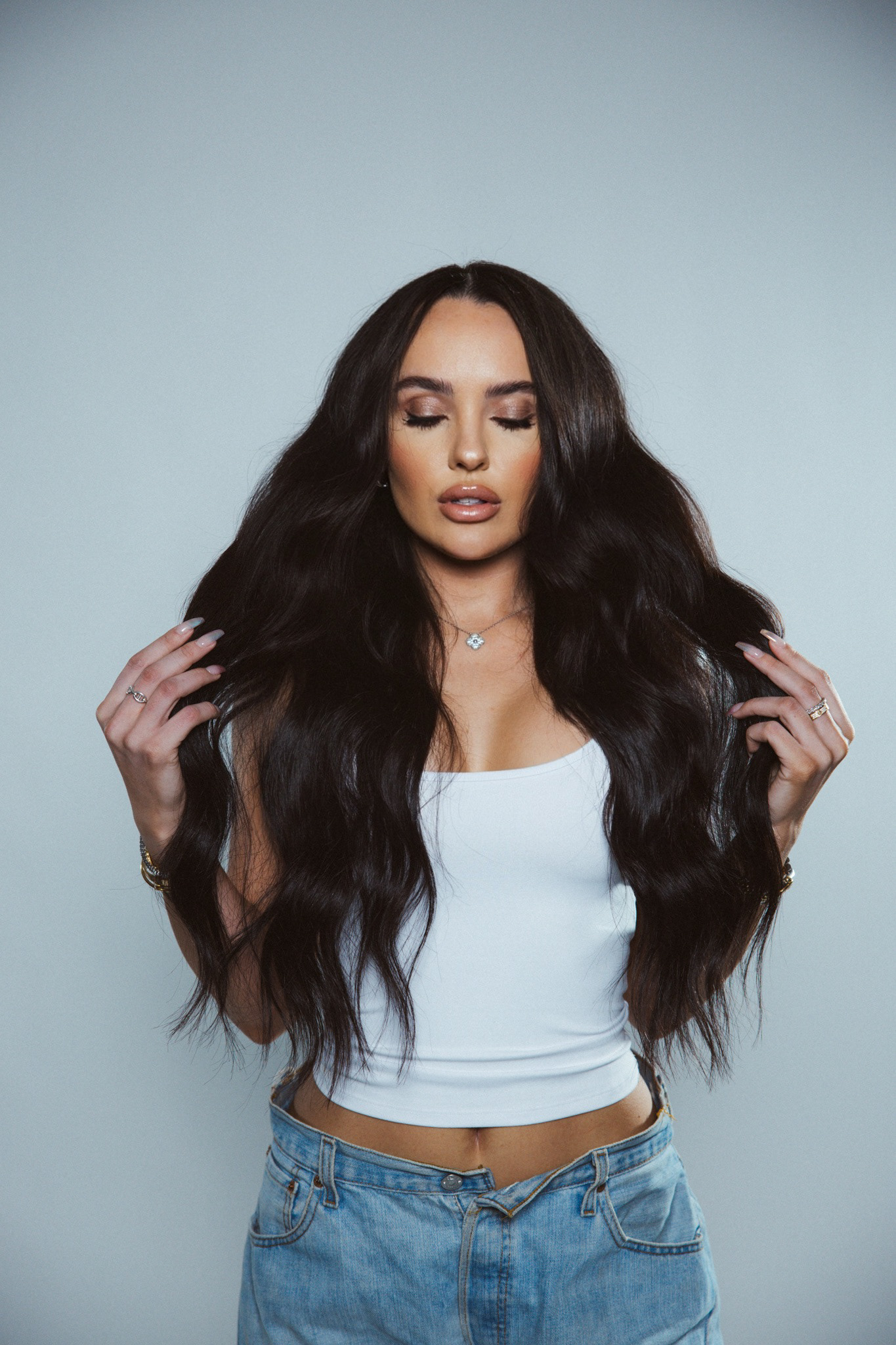 Long flowing locks of hair.